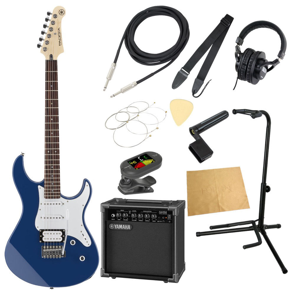 ヤマハ パシフィカのエレキギターにYAMAHA アンプ「YAMAHA GA15II」、ケーブル、チューナー、ストラップ、換え弦、スタンド、ピック、クロス、ヘッドホン、ストリングワインダーをお付けした11点セットです。