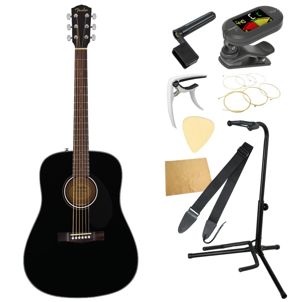 アコギ 入門セット フェンダー CD-60S Dreadnought Walnut Fingerboard Black ギター 初心者セット 9点セット アコースティックギター Fender※小物類に関しては、用途は同じですが掲載画像の製品と異なる場合がございます。あらかじめご了承ください。チューナー、ストラップ、換え弦、スタンド、ピック、クロス、カポタスト、ストリングワインダーをお付けした9点セットです。Fender CD-60S Dreadnought Walnut Fingerboard Black アコースティックギター再デザインされたCD-60Sは、単板スプルーストップに、優れたプレイヤビリティを追求した滑らかなフィンガーボード・エッジ加工済み「Easy-to-Play」ネックを装備し、本格的なアコースティックギター体験を優れたコストパフォーマンスで実現します。