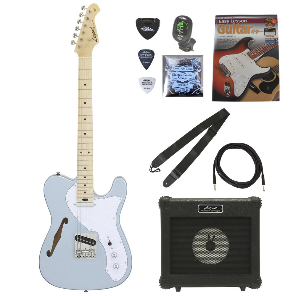 エレキギター 入門セット レジェンド LTE-69TL MIB ARIAアンプ付き 9点セット LEGEND ギター 初心者セット。エレキギターにAriaProII AG-10 PLUS、ケーブル、チューナー、ストラップ、換え弦、ピック、ピックケース、DVD付き教則本をお付けしたセットです。LEGEND LTE-69TL MIB エレキギターオクメ材のセミホロウボディとグロス仕上げのメイプル1ピースネックを採用したLTE。限定カラーモデル!