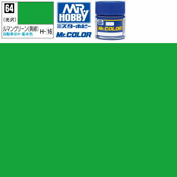 ラッカー塗料 プラモデル クレオス ルマングリーン 黄緑 光沢 Mr.カラー C-64 GSI ミスターホビー エアブラシ 塗料 タミヤ 模型用塗料