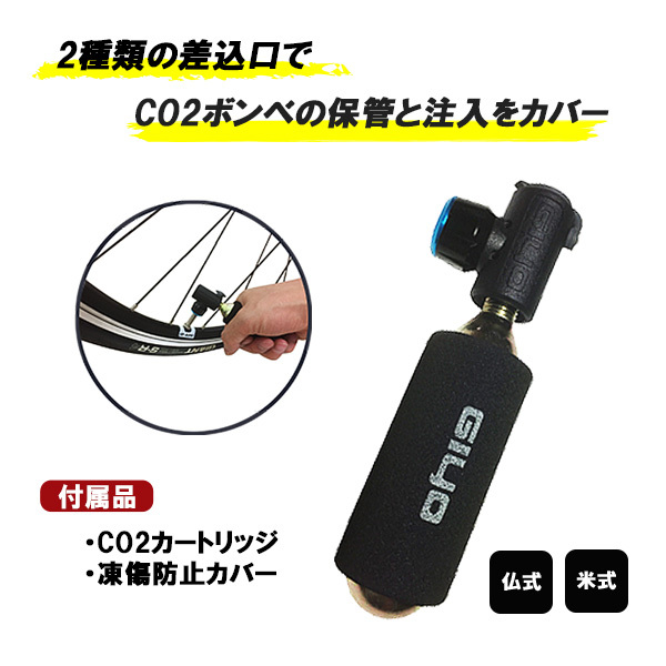 自転車 インフレーター CO2カートリッジ 空気入れ 仏式 米式