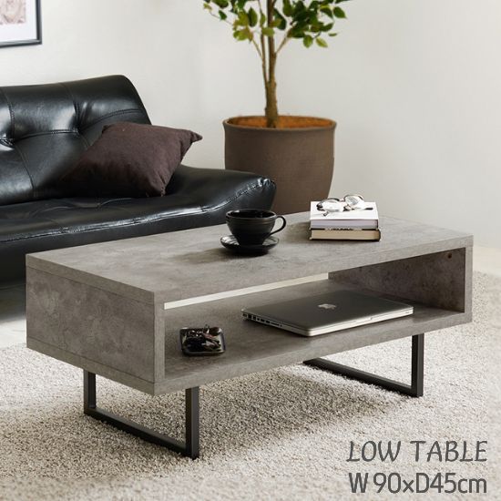 コンクリート調 モダンデザイン ローテーブル 幅90cm スチール脚 オープン収納 シンプル ストーン センターテーブル 90 お洒落 おしゃれ テーブル 西海岸