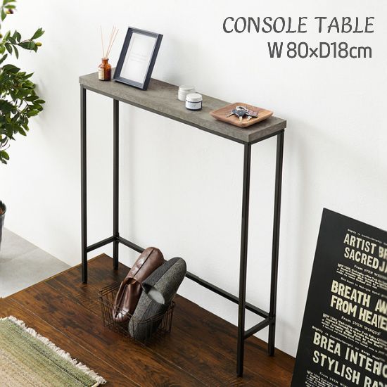 コンクリート調 モダンデザイン コンソールテーブル 幅80cm スリム 玄関 スチール脚 グレー アンティーク ストーン テーブル 玄関収納 お洒落 おしゃれ 西海岸