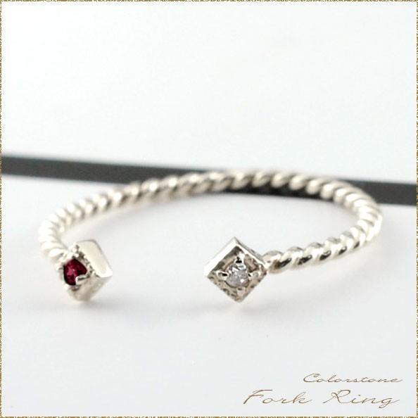 リング k18 ダイヤモンド 指輪 ガーネット フォークリング ゴールド ピンキーリング ファランジリング 18k 18金 ホワイトゴールドk18 華奢 クリスマス