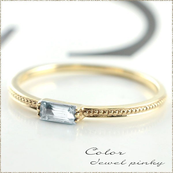 リング 18金 バケットカット アクアマリン 指輪 k18 ゴールド ピンキーリング イエローゴールドk18 18k 華奢 3月 誕生石 クリスマス