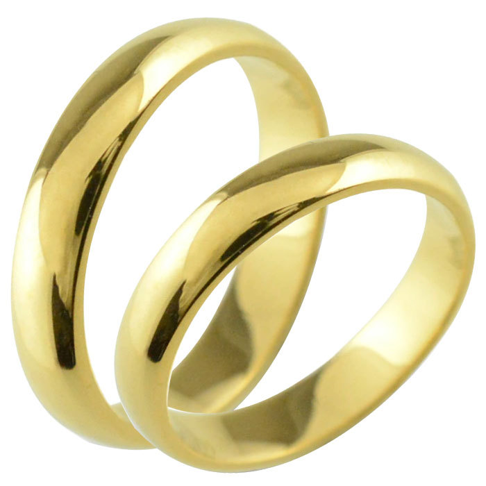 結婚指輪 ペアリング 18金 シンプル リング 指輪 イエローゴールドk18 マリッジリング k18 18k 4mm ペア 2本 セット 甲丸 地金 メンズ レディース ホワイトデー