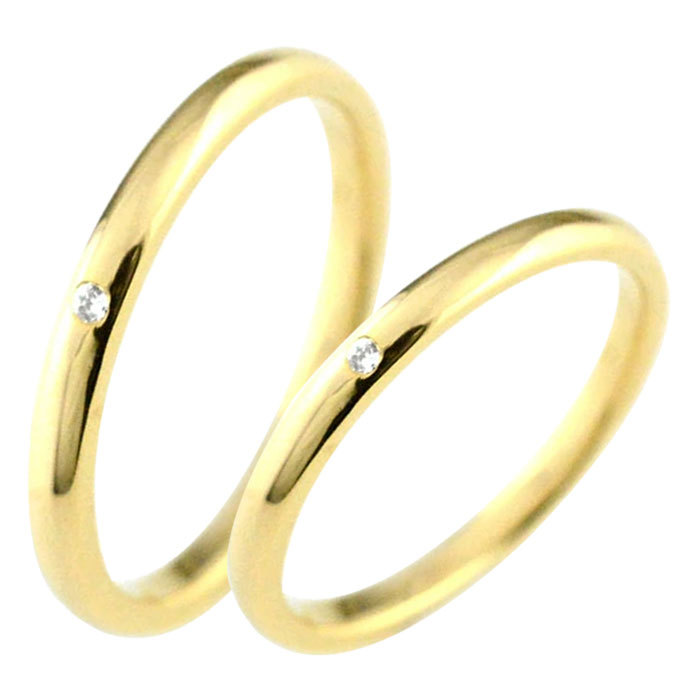 結婚指輪 ペアリング 18金 シンプル リング 指輪 イエローゴールドk18 ダイヤモンド マリッジリング k18 18k 2mm ペア 2本 セット 甲丸 ホワイトデー