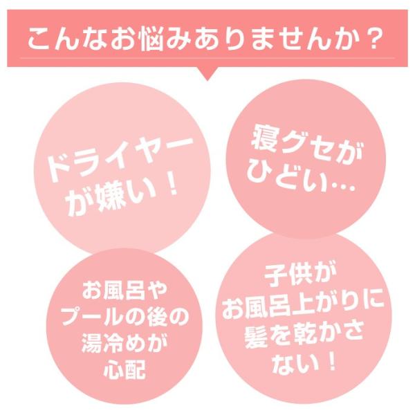 湯冷めや風邪予防にも効果あり、髪を乾かす時間も短縮できます。