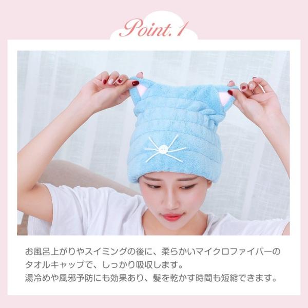 タオルキャップ ヘアキャップ 女の子 ねこ耳 子供 マイクロファイバー 小学生 大人 ドライキャップ ヘアターバン 吸収 速乾 キッズ 水泳