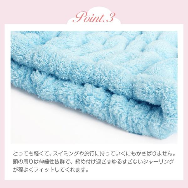 お風呂上がりやスイミングの後に、柔らかいマイクロファイバーのタオルキャップで、しっかり吸収します。