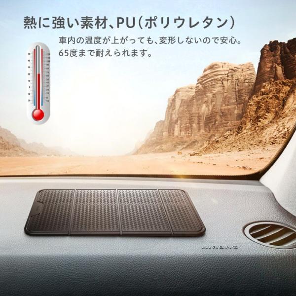 熱に強いポリウレタン素材のため、車内の温度が65度まで上がっても大丈夫です。