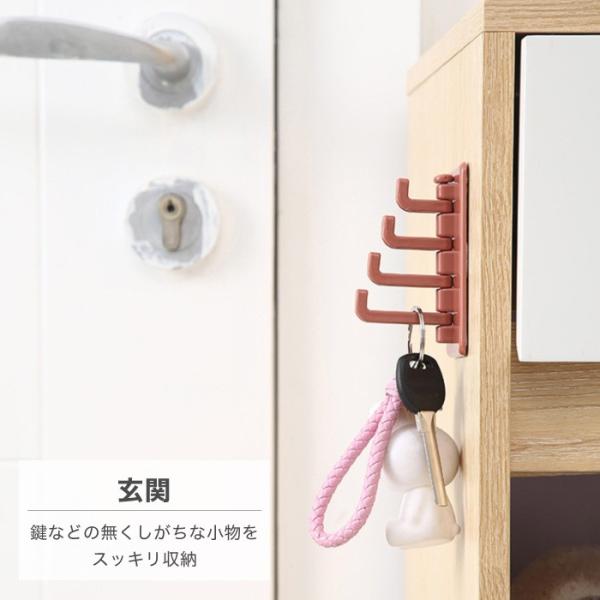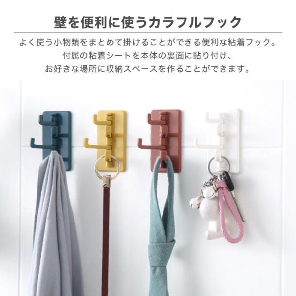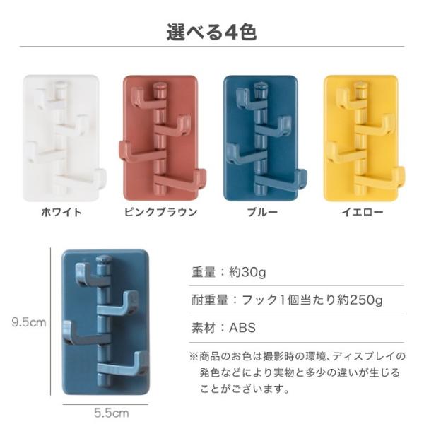 壁掛け フック 収納 4連フック ウォールフック キッチンツールフック 鍵掛け 吊り下げ収納 小物フック 小物掛け おしゃれ 可愛い くすみカラー