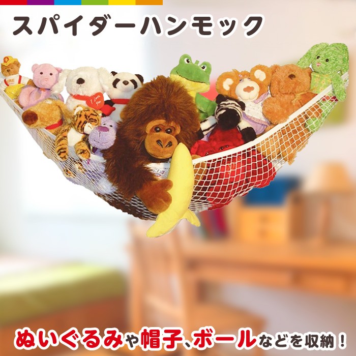 ハンモックにぽいっと放り投げるだけで楽ちん◎お子さまから見えるように収納ができます。