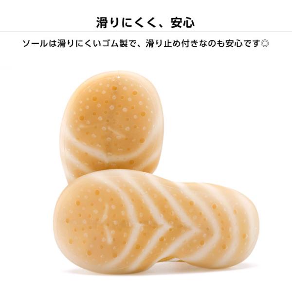 ソールは滑りにくいゴム製で、滑り止め付きなのも安心です◎