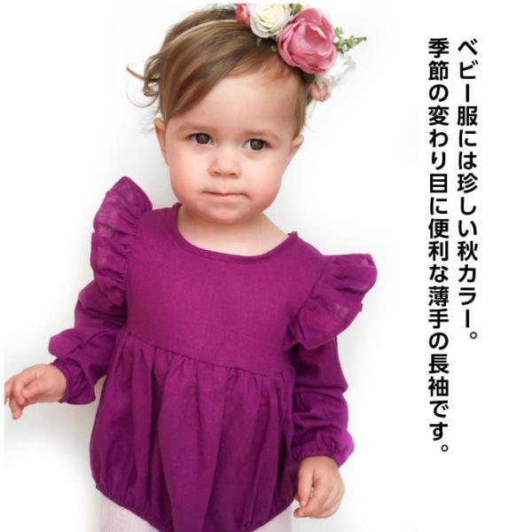 ベビー服には珍しい秋カラー。季節の変わり目に便利な薄手の長袖です。