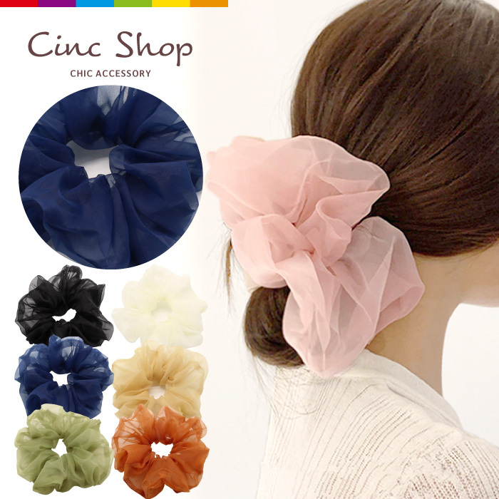 大ぶりデザインが目を引くオーガンジーシュシュ。