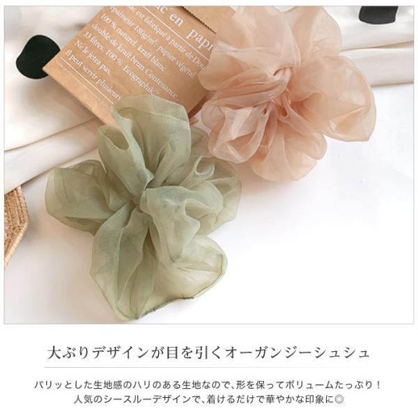 シュシュ ヘアアクセ 大きめ 大振り ヘアアクセサリー ヘアゴム オーガンジー ボリューム レディース 無地 大人っぽい 可愛い