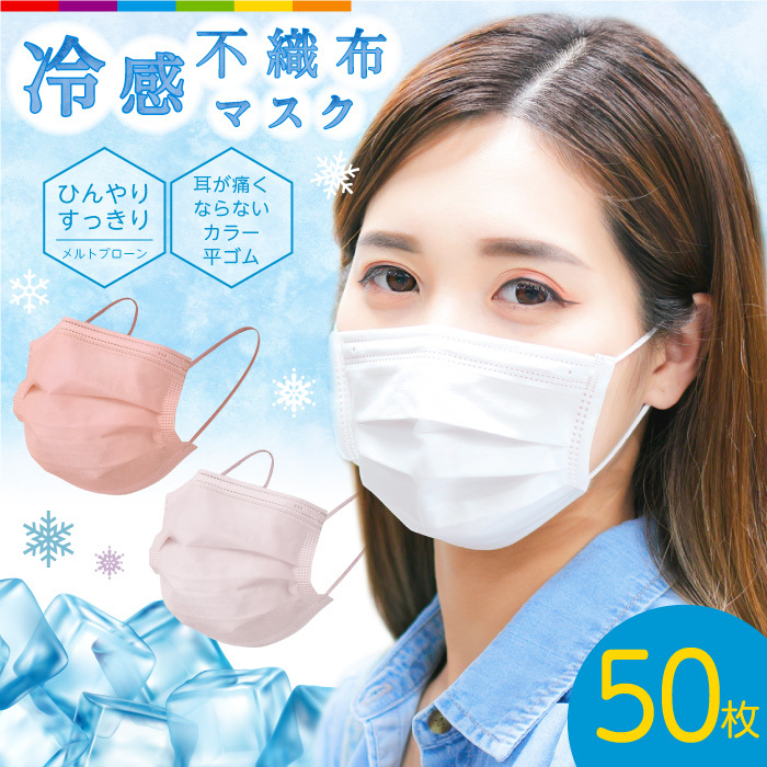 マスク 夏用 冷感 不織布 冷感マスク 不織布 血色マスク 不織布マスク 接触冷感 冷感不織布マスク 50枚 クールマスク 使い捨て 血色カラー 三層構造 男女兼用