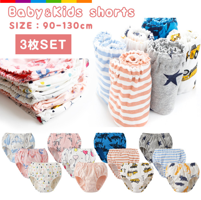 ベビー パンツ キッズ 綿100% 3枚セット コットン100% 子ども 女の子 男の子 ショーツ 下着 肌着 インナー 柔らかい 小学生 幼児 90 100 110 120 130