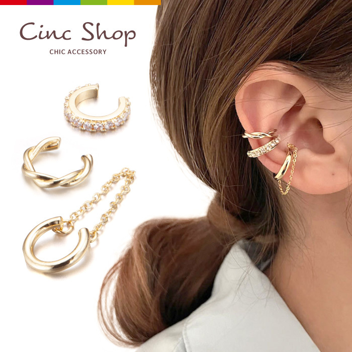 イヤーカフ 3種類セット クリップピアス フェイクピアス ノンホールピアス 軟骨 ピアス レディース 挟む 重ね付け おしゃれ 使用簡単 誕生日 記念