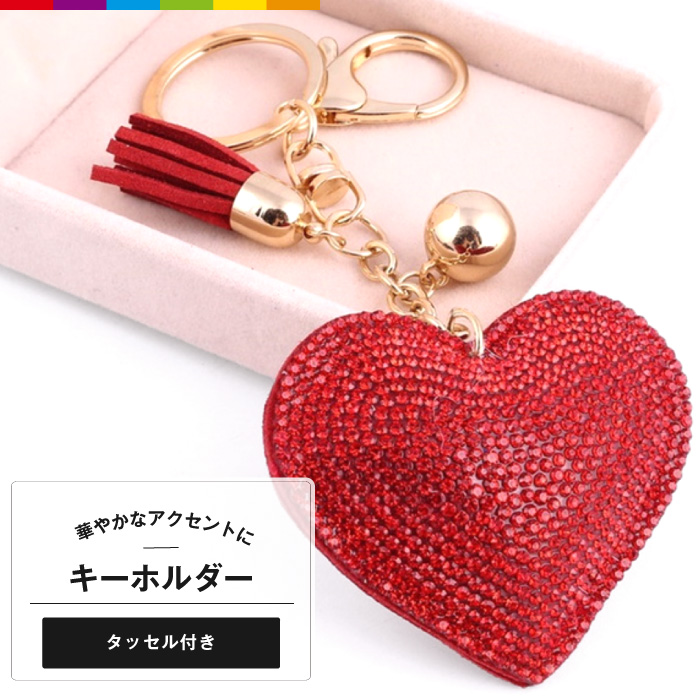 キーホルダー おしゃれ バック チャーム バッグチャーム ハート ラインストーン タッセル カラフルキーホルダー