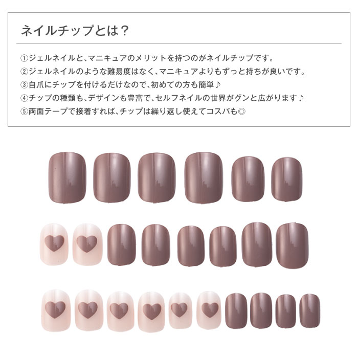 ネイルチップ 可愛い ハート柄 ネイルチップ ラウンド ネイルアート デコネイル 両面テープ 24個セット