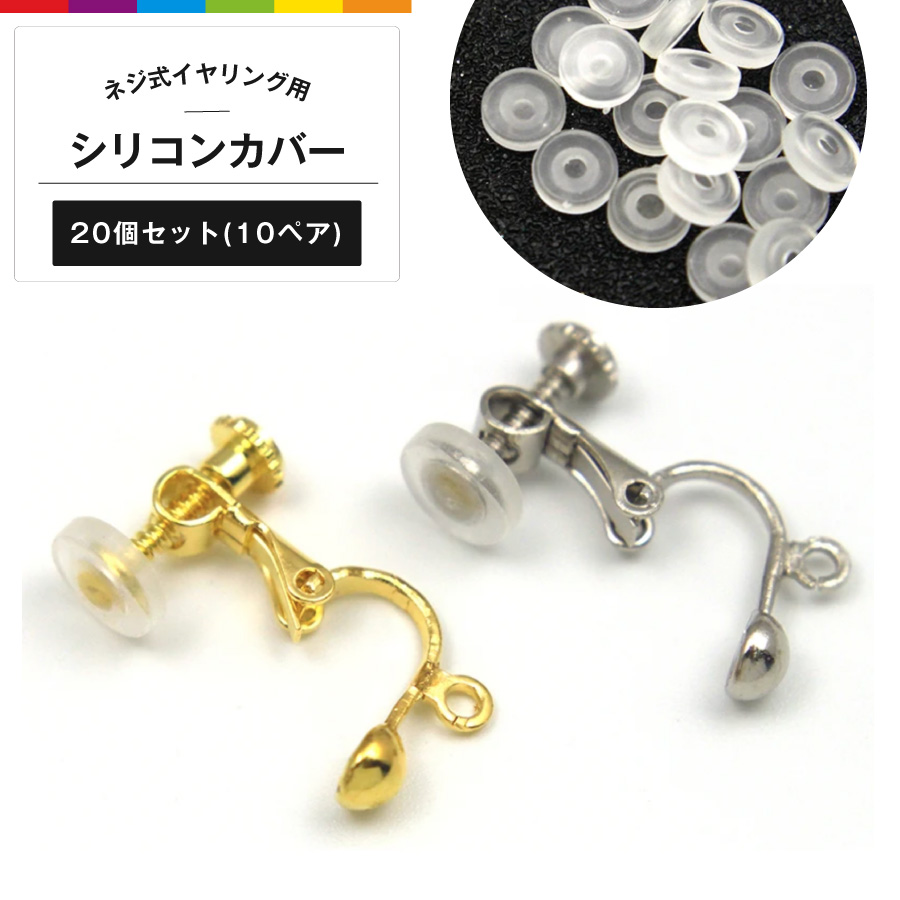ネジ式イヤリング用 シリコンカバー 20個 痛くなりにくい パーツ シリコン クリア 透明 材料 素材