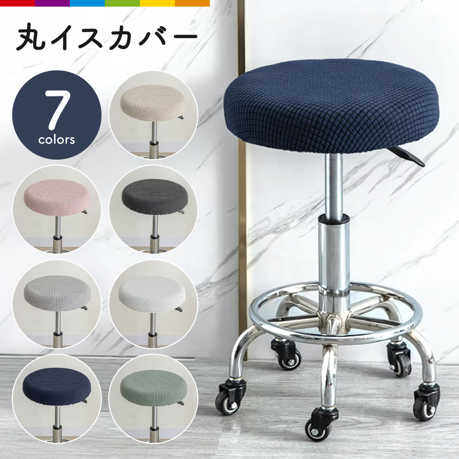 椅子カバー チェアカバー 丸椅子カバー 回転椅子カバー 丸形 キャスター 単色 無地 厚手 ワッフル生地 フィット 伸縮 ストレッチ 模様替え