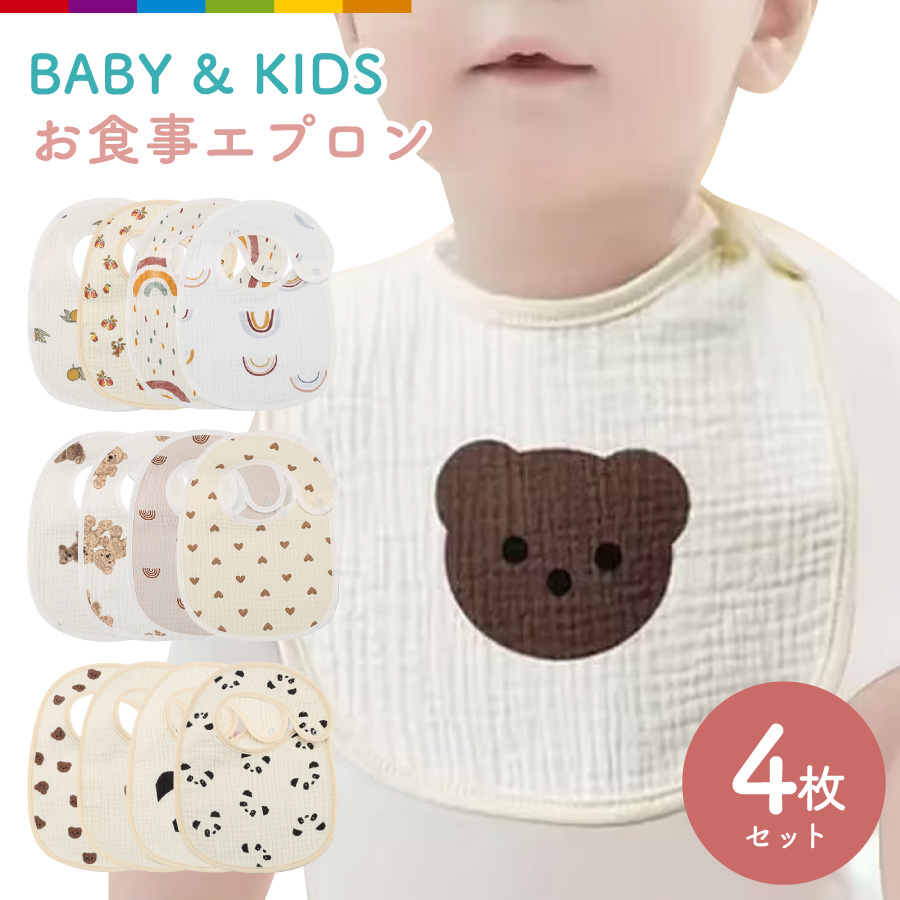 スタイ ベビー キッズ 保育園 お食事スタイ 食事エプロン 4枚
