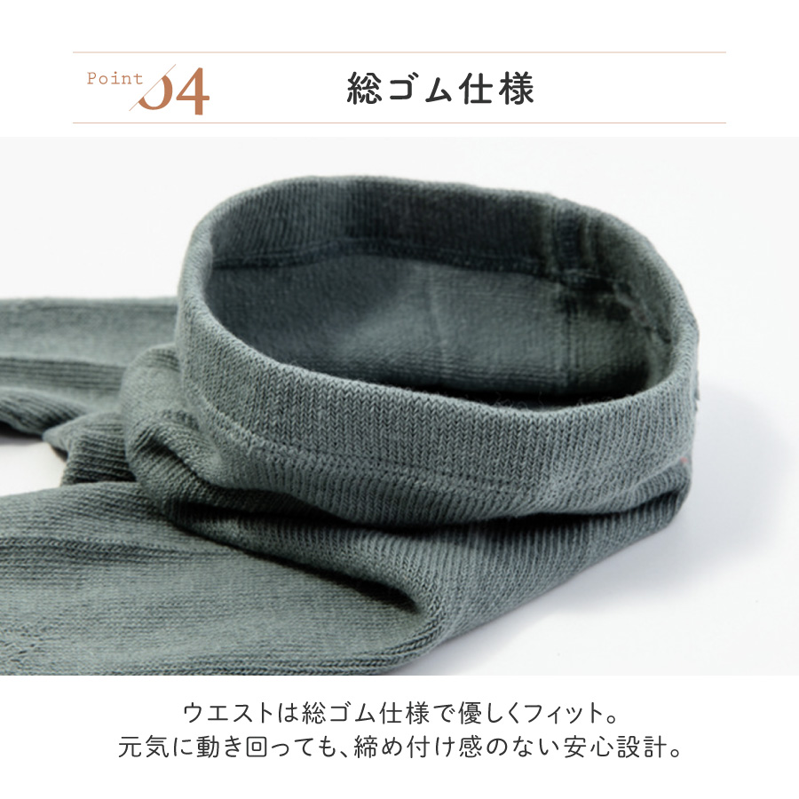 伸縮性に優れたポリウレタンを使用、 成長の早い赤ちゃんたちに優しくフィットして、 足回りを暖かくサポートします。