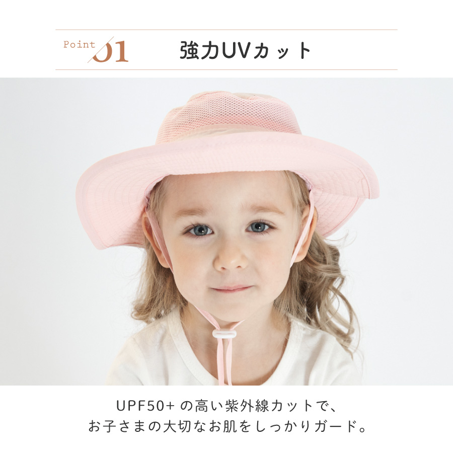帽子 キッズ ゴム付き 日よけ 日除け 子供 秋 ゴム 紐 UVカット メッシュ ハット ベビー 女の子