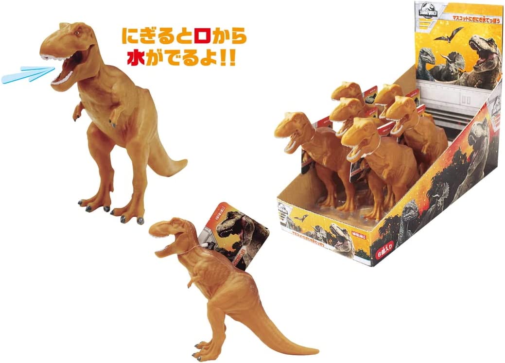 ジュラシックワールドのT-レックスのかっこいい水てっぽう!T-レックス本体をにぎると口から水がでるので水遊びやお風呂遊びとして楽しく遊べます。またやわらか素材(PVC)のマスコットなのでごっこ遊びにも最適な商品です。<主な材質>本体:PVC(玩具安全基準適合可塑剤使用)