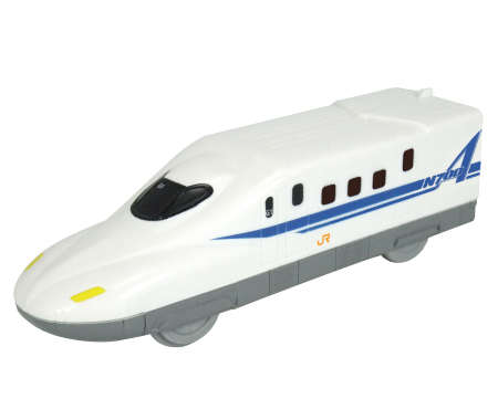 後ろに引いて離すだけ、レールなしでどこでも遊べる、プルバックの新幹線。商品サイズ:W65×D195×H50mm