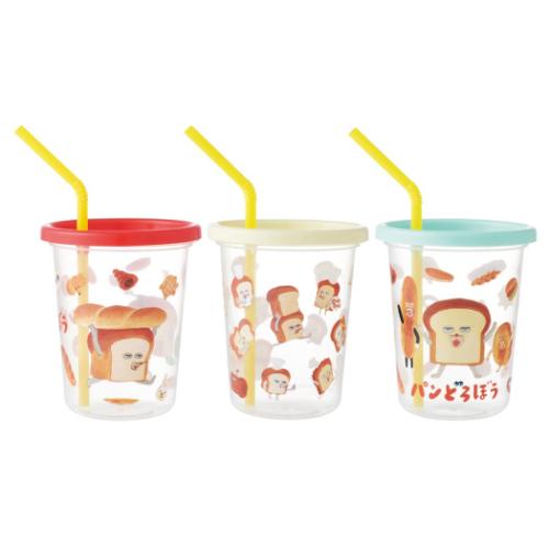 ストロー付タンブラー 3個セット 320ml パンどろぼう 蓋付きプラコップ スケーター グッズ