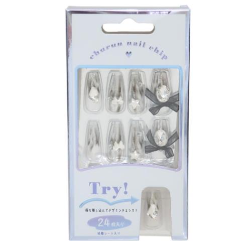 コスメ雑貨 ネイルチップロングスクエアタイプ CLEAR RIBBON カミオジャパン ネイルアート 付け爪