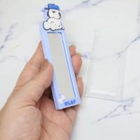 「手鏡」 スヌーピー スリムラバーミラー 手鏡 オラフ ピーナッツ キャラクター グッズ 超ミニサイズでポーチにすっぽり収まるラバーミラー 大人気[PEANUTS/SNOOPY]グッズにまたまた可愛いnewアイテム登場こちらは身だしなみの必需品[スリムラバーミラー]コンパクトサイズで持ち運びにGOODミラー部分を傷つけないPVCケース付き他にもかわいい手鏡あるのでお気に入りを揃えてくださいサイズ:約35x120x6mm素材:ラバー、アクリル、PVC ミニサイズ/お出かけ/身だしなみチェック/持ち歩き/スリムミラー
