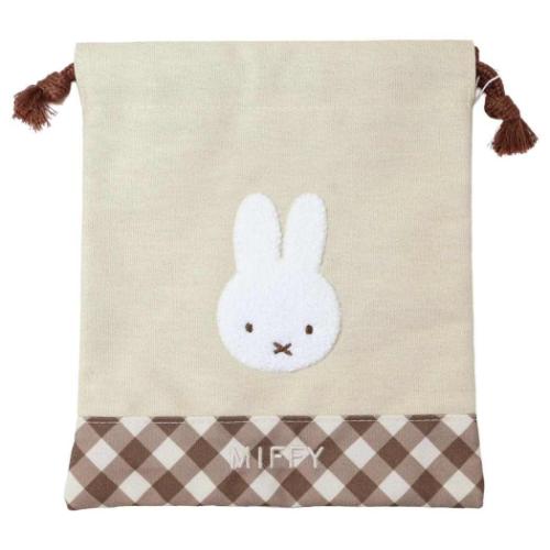 「巾着袋」 ミッフィー 巾着袋 きんちゃくポーチ BE ディックブルーナ マリモクラフト 小物入れ 小物の収納に便利なきんちゃくポーチ ディックブルーナの人気絵本[miffy/ミッフィーちゃん]グッズにまたまた可愛いnewアイテム登場斜めに構成デザインされた格子柄のダイアゴナルチェックシリーズこちらは[巾着ポーチ]コスメや小物をしっかり収納できます他にも多種多様な巾着袋ありますのでお気に入りを揃えてくださいサイズ:約170x200mm素材:綿、ポリエステル カラー/ベージュ系(薄いブラウン) かわいい/整理/旅行/プレゼント/ギフト