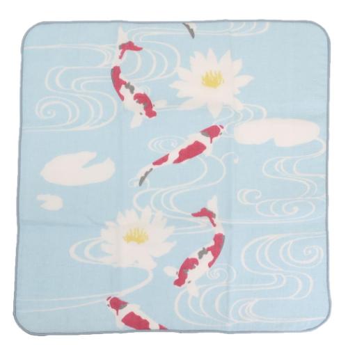 ミニタオル ジャパニーズスタイル 片面ガーゼハンカチタオル 鯉とスイレン 日繊 汗拭きタオル