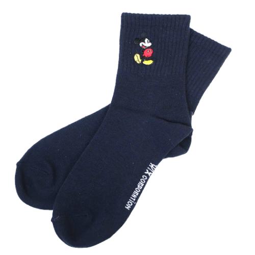 ディズニー 女性用靴下 レディース ワンポイント刺繍アメリブロークルーソックス ネイビー ミッキーマウス ウイックス【メール便可】