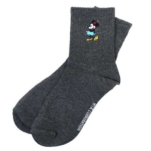 ディズニー 女性用靴下 レディース ワンポイント刺繍アメリブロークルーソックス チャコール ミニーマウス ウイックス【メール便可】