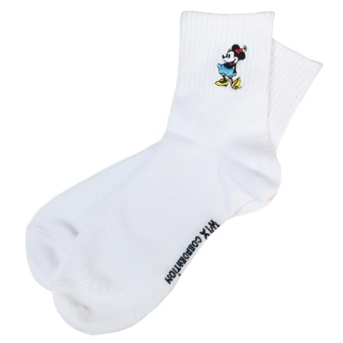 ディズニー 女性用靴下 レディース ワンポイント刺繍アメリブロークルーソックス ホワイト ミニーマウス ウイックス【メール便可】