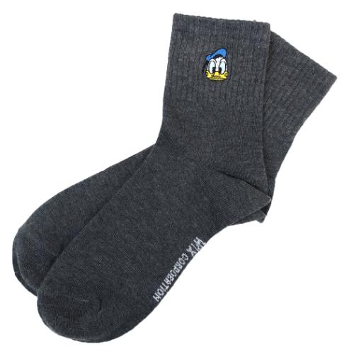 ディズニー 女性用靴下 レディース ワンポイント刺繍アメリブロークルーソックス チャコール ドナルドダック ウイックス【メール便可】