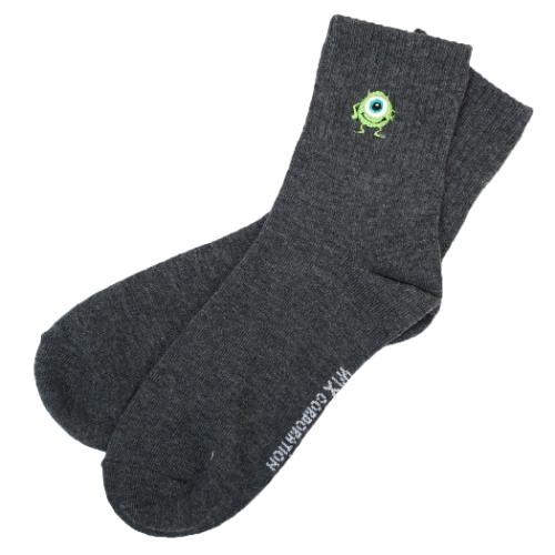 ディズニー 女性用靴下 レディース ワンポイント刺繍アメリブロークルーソックス モンスターズインク チャコール マイク ウイックス【メール便可】