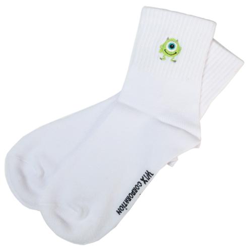 ディズニー 女性用靴下 レディース ワンポイント刺繍アメリブロークルーソックス モンスターズインク ホワイト マイク ウイックス【メール便可】