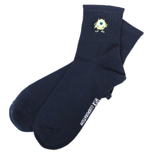 ディズニー 女性用靴下 レディース ワンポイント刺繍アメリブロークルーソックス モンスターズインク ネイビー マイク ウイックス【メール便可】