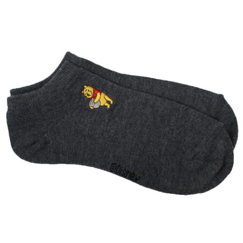 ディズニー 女性用靴下 レディース ワンポイント刺繍アンクルソックス チャコール くまのプーさん ウイックス【メール便可】