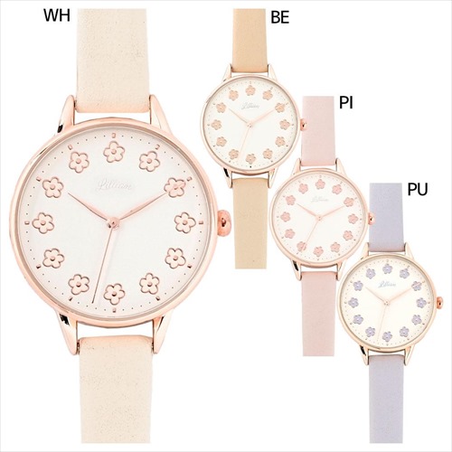 「腕時計」 腕時計 メアリー WH BE PI PU フィールドワーク おしゃれ かわいい ギフト ふんわりカラーで華やかな腕時計 ふんわりカラーの華やかなデザインが可愛い腕時計「メアリー」が新発売文字盤を彩るシンプルな花とパステルカラーがとっても可愛い他にも色々な時計があるのでぜひお気に入りを揃えてくださいケースサイズ:直径約34mmベルト全長:約214mm腕周り最小:約151mm素材:(ケース)合金、(バンド)合皮ムーブメント:日本製 カラー/ベージュ系(薄いブラウン)/パープル系(紫 バイオレット)/ピンク系(フューシャピンク ライトピンク)/ホワイト系(白) アクセサリー/カジュアル/シンプル/プレゼント/誕生日