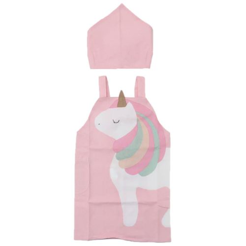 エプロンセット キッズエプロン&三角巾 M ハローユニコーン ピンク フレンズヒル