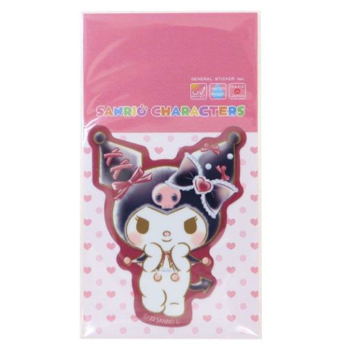 「ステッカー:キャラクター」 クロミ ビニールステッカー サンリオ ミニシール キャラクター 自転車やパソコンいろんなところに貼って楽しい耐水ステッカー サンリオの大人気キャラ[KUROMI/クロミ]グッズにまたまた可愛いnewアイテム登場こちらは定番人気アイテム[ステッカー]耐光耐水仕様のビニール素材なので屋外使用もOKバイクやメットはもちろん、スマホ、タブレット、パソコン、車、楽器、ボード、冷蔵庫、自転車、スーツケース、マグカップ、文房具や手帳など色々なところでお楽しみ下さい。かわいいステッカーいろいろあるのでお気に入りを揃えてくださいサイズ:約48x59mm以内[Made in Japan] デコシール/デコステッカー/手帳/クロミちゃん/キャラクターシール