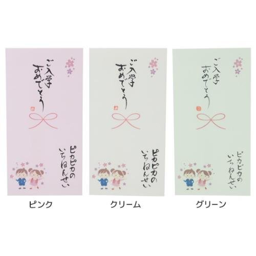 「熨斗袋」 祝儀袋 心温 手書き金封 1枚入 ご入学おめでとう ピカピカのいちねんせい カジュアル 職人が心を込めて筆書きした特別な金封 温かい心と言葉の贈り物[心温/Shinon]シリーズ職人が一文字一文字心を込めて手書きした筆文字の金封です。職人による1枚毎の手書きとなる為、商品毎に筆跡が異なります。手書きならではの味わいとニュアンスをお楽しみ下さい。絵の部分は印刷です。サイズ:約90x175mm(1枚入り)素材:和紙[Made in Japan] カラー/グリーン系(緑)/ピンク系(フューシャピンク ライトピンク)/クリーム系(白 薄いイエロー) のし袋/御祝儀袋/封筒/男の子/女の子